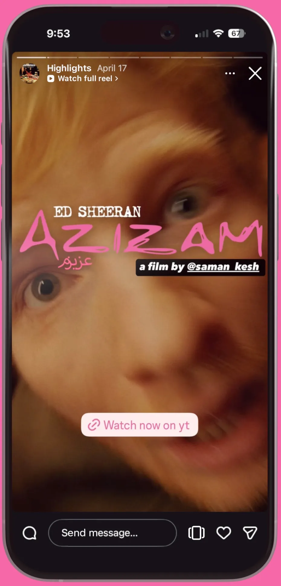 Working in close collaboration with Saman's managemenr, Ed Sheeran’s marketing team and management, we led early narrative and campaign development, helping articulate the emotional and cultural significance of the piece while positioning it as a bold artistic departure. Our scope included multi-phase rollout strategy, messaging architecture, platform voice guidance, and visual tone alignment across channels. We also ensured that the project’s deeper cultural context, Azizam as a love letter to Persians, was carried through consistently and respectfully across public touch points.